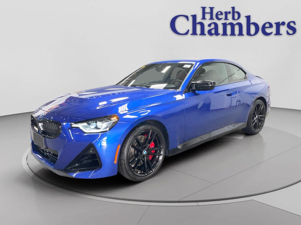 PREMIUM PACKAGE Adaptive Full LED Lights, Live Cockpit Pro, head-up display, Heated Steering Wheel, Automatic High Beams, Universal Garage-Door Opener, Heated Front Seats, harman/kardon® SURROUND SOUND SYSTEM, PARKING ASSISTANCE PACKAGE Active Park Distance Control, Surround View w/3D View, Rear View Camera, Parking Assistant Plus, REMOTE ENGINE START. Navigation, Sunroof, All Wheel Drive, Turbocharged, Satellite Radio, iPod/MP3 Input, Onboard Communications System, Aluminum Wheels, Dual Zone A/C, Apple CarPlay®, Blind Spot Monitor, Hands-Free Liftgate, WiFi Hotspot, Cross-Traffic Alert BMW M240i xDrive with Portimao Blue Metallic exterior and Tacora Red interior features a Straight 6 Cylinder Engine with 382 HP at 5800 RPM*. Rear Spoiler, MP3 Player, Rear Air, Keyless Entry, Steering Wheel Controls. CARFAX 1-Owner